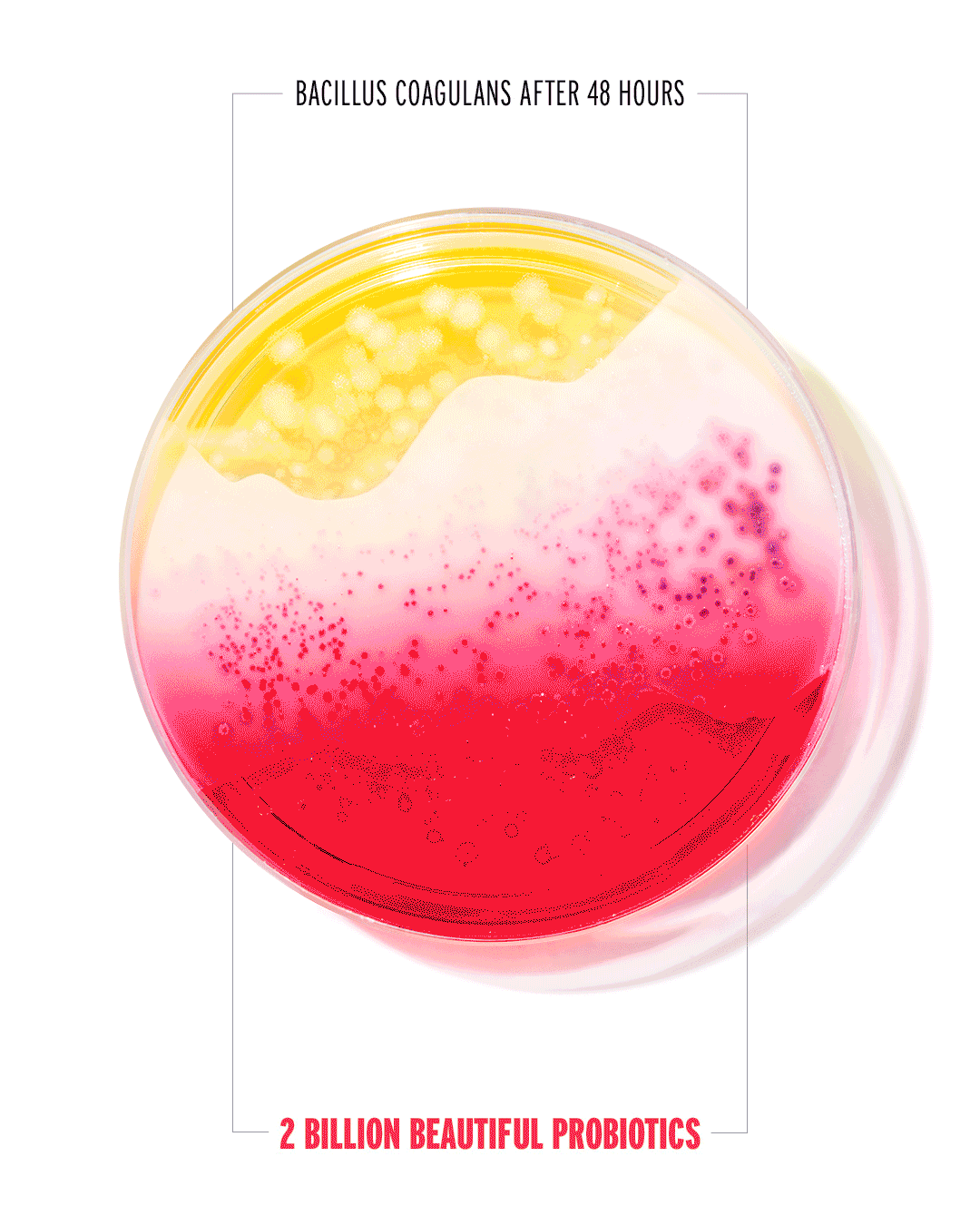 Working with leading microbiologist Dr Siouxsie Wiles, the team designed the bacterial growth to reflect the beauty of a thriving microbiome, demonstrating the natural beauty that exists inside when your gut is at its best.
