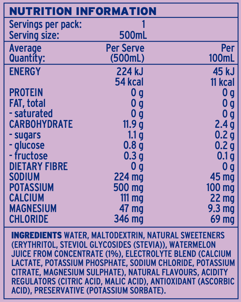 Available in three delicious flavours. Berry, Citrus and Watermelon.